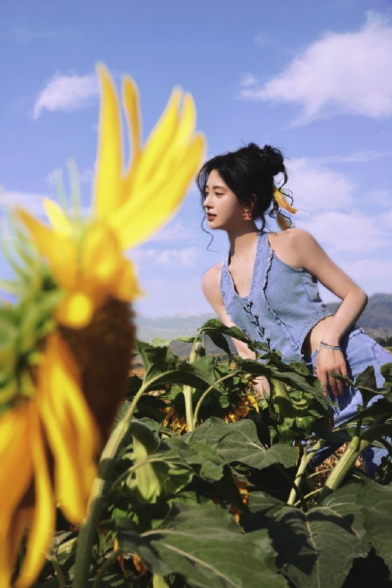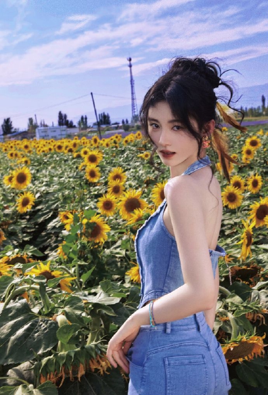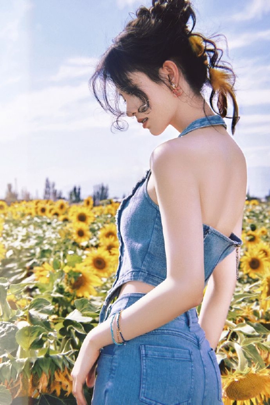 鞠婧祎穿牛仔套装化身向日葵女孩,露美背肌肤吹弹可破。 日前,鞠婧祎一组旅行随拍曝光,身穿牛仔套装转过身向日葵海,明媚阳光。 |