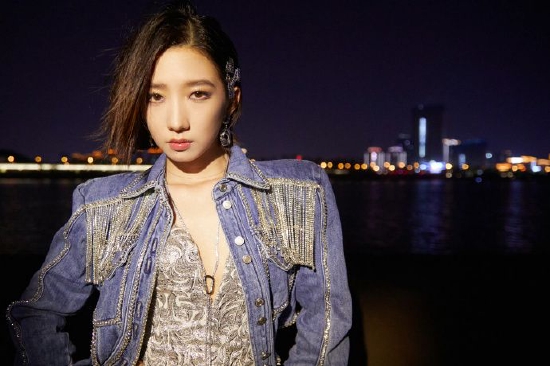 孟美岐齐耳短发时尚干练 银丝抹胸搭低腰破洞牛仔裤潮范足
