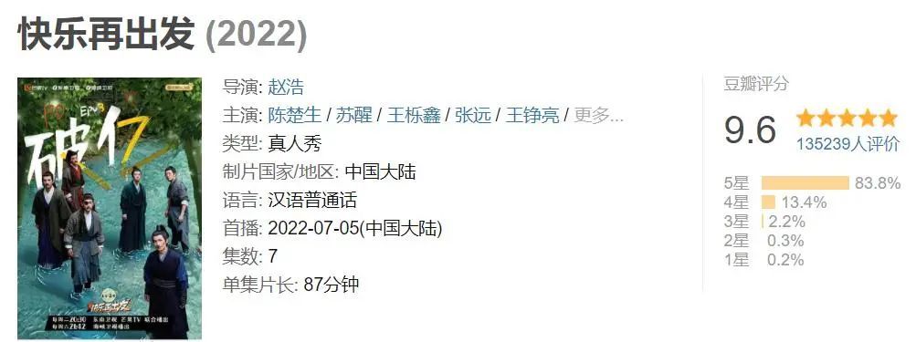 万万没想到,今年夏天的快乐,竟然是个“过气”男团给的。《快乐再出发》 豆瓣评分9.6,超过13万人打分,评论区除了各种摁头安利,基本没差评。名副其实的国综天花板无疑。 说起来,这档节目的诞生,跟《向往的生活》还有点关系。今年4月,为了给即将上线的《向往的生活6》预热,精打细算的节目组本着不浪费资源的前提,请了两组不那么当红的艺人到蘑菇屋录制了一台衍生综艺《欢迎来到蘑菇屋》。其中一组,就是07版《快男》13强中的6名选手,陈楚生、苏醒、王栎鑫、王铮亮、张远、陆虎。为了庆祝这次天降好运,摩拳擦掌的哥几个还欢天喜地给组合起了个名:再就业男团。意在通过这次亮相,后续能多接点活儿。 谁曾想节目一上线,已经默默无闻多年的这个古早男团,竟然再次火了。意犹未尽的网友在线喊话节目组,让给他们单独出一档综艺,并拍胸脯保证“只要这几人,多少集都愿看”。千呼万唤之下,《快乐再出发》应运而生。 跟其它综艺相比,这档节目最大的亮点就是好笑。到啥程度?举个例。“木头人”那一期。为了未来两天能高枕无忧地(免费)上厕所,男团成员被迫挑战“123木头人”。游戏环节很简单,几个人脑子也不笨,但架不住人多,还不齐心。所以游戏一开始,老年组(苏醒、陈楚生、王铮亮)就因这样那样的状况被罚了好几次。 青年组(王栎鑫、张远、陆虎)这边,新加入降智组合的王栎鑫也像是一秒被屏蔽了智商,不是状况百出,就是看着哥哥们自嗨到捶地。直到虎头虎脑的陆虎闷头提前冲线,全员气氛终于达到嗨点。上气不接下气的王栎鑫一个没忍住,张嘴就吐了出来(真吐)。 尴尬关头,“大仇得报”的其他兄弟不仅没有温暖妥帖的客套和安慰,反而一边蜂拥而至小跑着上前围观,一边补刀,夸他为国综献出了“首吐”。“一报还一报”的畅快和谜一样的欢乐,在已知国产综艺中绝对前无古人。 另一次是常年混影视圈的王栎鑫偶然接了个大活。旁听的苏醒表面云淡风轻,实际百爪挠心,左右暗示小王,快给个机会。 王栎鑫也很懂,立马给导演推荐了“影帝”苏醒。但苏总不放心,非得自己给导演沟通。酝酿半天,气沉丹田的他刚刚开口说了句,导演...。旁边沉迷干饭的陆虎突然端起盘子就来了句:这猪蹄汤我要了。 被气得目瞪口呆的苏总,一时竟不知该生气还是无语,只能反复吐槽+控诉:我一辈子能跟导演说上几次话?就被你一个猪蹄汤给整没了? 虽然时常“窝里斗”,但有时候为了口吃的,能屈能伸的哥几个也会短暂表现得团结一致。比如:第四期接字游戏。根据游戏规则,他们要按节目组给出的开头语,每人三个字往下接,最后形成一句通顺完整的句子。第一句是个众所周知的烂梗,“如果张远又哭了”。苏醒不怀好意地开头“难道是”,张远愁眉苦脸硬接“他心里”,陈楚生意味深长“在想着”,陆虎一脸坏笑“前女友”。随着句子组成,气氛肉眼可见开始紧张,但轮到王铮亮的时候,他一句“美味的”神转折,让垫底的王栎鑫顺理成章接上了“热干面”。不仅句子完整,还四两拨千斤化解了张远的尴尬和危机。 第二句是吐槽王栎鑫,“今晚又打呼”。懒得动脑子的几人开始套用公式,从“难道是”很快顺到了“前女友”,在王栎鑫强作镇定的笑声中,慌不择言的陆虎临时把“前女友”改成了“啤酒鸭”,反应神速的王铮亮急中生智再次来了个转折,一下子就给王栎鑫的“热干面”做好了铺垫。要不怎么说“姜还是老的辣”。 这个片段除了好笑,还能看出另一层意思。几个人玩笑归玩笑,关键时候,其实心里都有分寸。比如:同样关于前女友(妻)的梗,对张远,大家都能肆无忌惮,但换成王栎鑫,就会心有灵犀一致绕开。原因大家都懂,但这种处理方式,却能进一步证明他们彼此既是诤友,更是挚友。 至此,问题来了。作为一档无流量、无台本的真人秀,满屏只剩下“穷”字的《快乐再出发》为啥能在一众节目中脱颖而出,意外出圈?总结原因,不外乎以下几点。一、彼此够熟。经过《快男》时期的短暂爆红,因为各种原因沉寂下来的几人私下一直保持着频繁联系。比如:苏醒跟张远,不仅是多年好友,还是同住一个小区的邻居。有一年苏醒因为看球砸了电视,之后转头就去张远家把电视搬了回来。直到有粉丝告诉在外工作的张远,说苏醒搬了你家电视,张远还一脸蒙圈“啊?” 在节目中看似智商捉急的陆虎,只要遇上苏醒,就能马上恢复正常。苏醒没事爱在他面前显摆才艺,人狠话不多的“陆一统”经常一言不合就拉黑。事后回加,还要特意选个时间(2:50=250)把对方“羞辱”一番。 《快男》期间,王栎鑫对苏醒的嫌弃可谓人所共知。然而经过这么多年的磨合,俩人早已化敌为友,成了只要有钱就能维持表面关系的塑料兄弟。 不过关键时候,苏醒对王栎鑫也是真宠。比如:有一次做节目,王栎鑫被要求向朋友借钱。他打给苏醒,说需要100万,正在睡觉的苏醒毫不犹豫回了两个字:账号。由此,你大概就能理解之前处处看不惯苏醒的王栎鑫,为啥现在那么爱苏醒。 性格内敛的陈楚生,平时很少把时间花在社交上,但只要有需要,他永远最妥帖,最暖心。 因为彼此足够熟悉,知道对方底线,一群人才能在没有情景设计的情况下,自娱自乐把一台节目展现得这么好看。就如陈楚生所说,他们不是在做节目,就是在展示生活。就冲这点,其它综艺就没法比拟。 二、全员没包袱。这两档节目